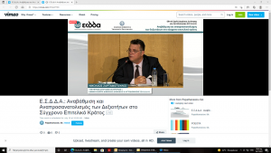 | 1η Συνεδρία: | «Εκσυγχρονισμός της Ελληνικής Δημόσιας Διοίκησης και Επιτελικό Κράτος. Ο Κλάδος Επιτελικών Στελεχών και ο Ρόλος της Ε.Σ.Δ.Δ.Α.» |